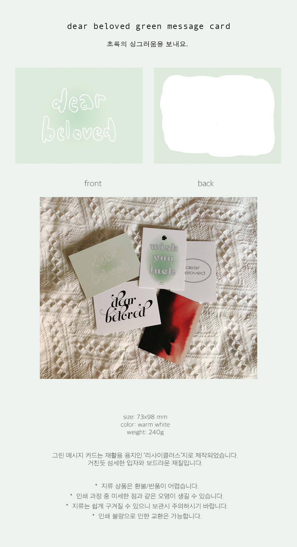 dear beloved green msg card